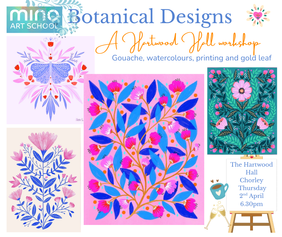In this relaxed, fully guided workshop, we’ll explore stylised florals inspired by nature — bold leaves, flowing stems, decorative pattern and layered colour. Using gouache, watercolours and simple printing techniques, we’ll build vibrant compositions that feel fresh, modern and beautifully balanced.
