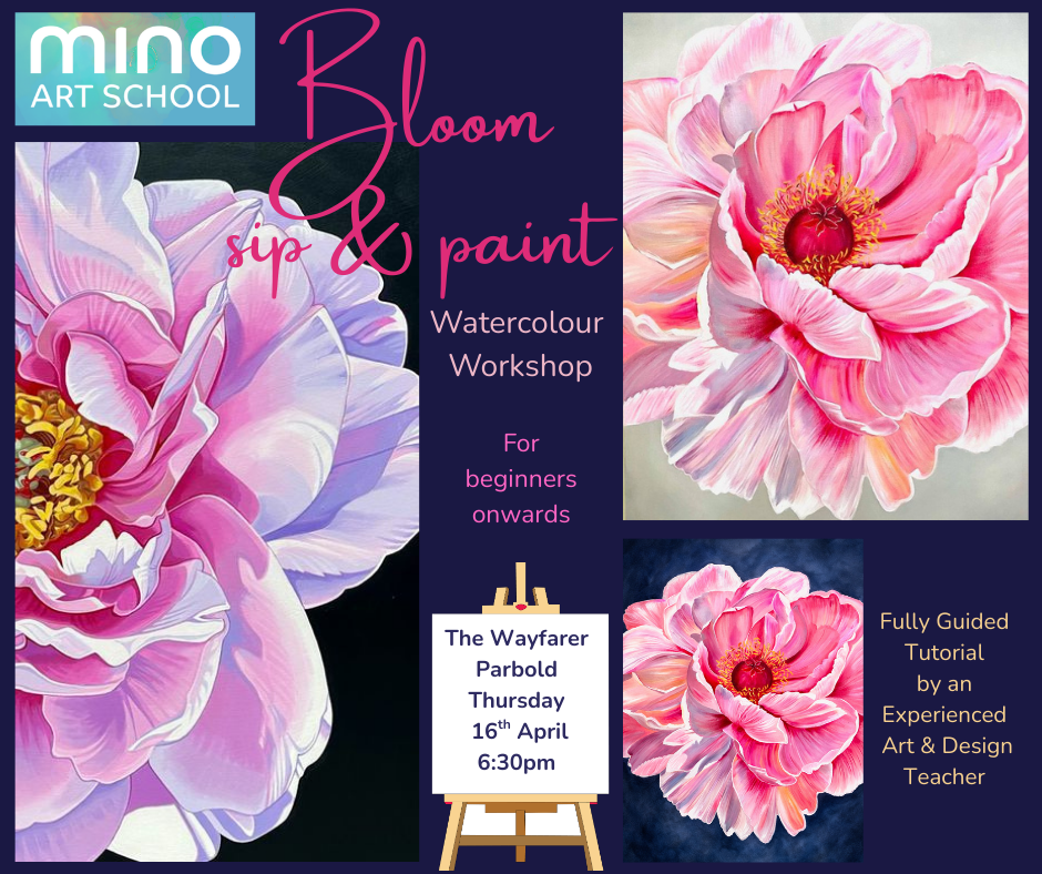 We’ll explore the rich, layered beauty of these expressive blooms — from soft blush pinks and glowing coral tones to delicate highlights and deeper shadowed folds within the petals. Working with flowing washes and vibrant colour, we’ll build depth and movement within the petals, capturing the softness and energy that makes watercolour such a magical medium.